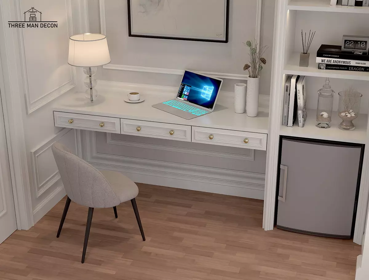 - โต๊ะทำงาน: ควรเลือกโต๊ะที่มีขนาดพอเหมาะกับพื้นที่และสามารถรองรับการทำงานได้หลากหลาย เช่น โต๊ะที่มีพื้นที่วางคอมพิวเตอร์, เอกสาร, และอุปกรณ์สำนักงานอื่นๆ นอกจากนี้ยังควรเลือกโต๊ะที่มีการจัดเก็บเอกสารหรืออุปกรณ์ต่างๆ ไว้ในตัวเพื่อให้ห้องดูเป็นระเบียบ